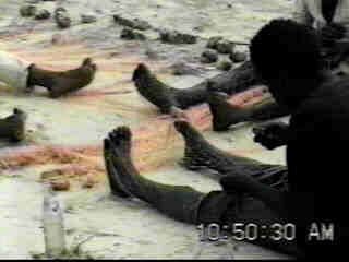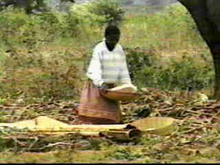 | As we watched the people's daily lives, we realized how very well off we in the States are! Malawian women spend their days largely in the production and preparation of food. Early in the morning, wood must be gathered and carried home and fires built. | |