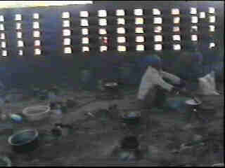 | Unlike U.S. hospitals, the medical staff at Embangweni attends only the medical needs of patients. Meals and personal care are provided by "guardians" -- family members who stay with the patients, living just outside the compound wall, and cooking in this communal kitchen. They do the laundry and keep the patients comfortable in the wards or outside when they are able. | |