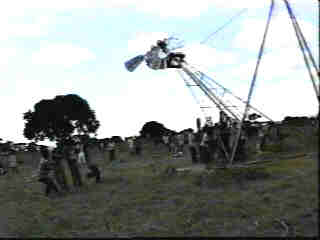 | Deep bore holes are also drilled to serve larger needs. The hospital clinic at Kalikumbe has such a bore hole, which is now being pumped using a windmill. The windmill was donated by a Nebraska church several years ago; it was finally erected at Kalikumbe. Here again, our church family at Mountain View was a vital part of our mission as they located and shipped essential parts which could not be found in Malawi. | ![]() |